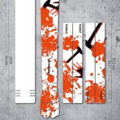 De set bestaat uit: 1x bovenbuisbeschermer, 2x folie voor grotere frames, 1x transparante onderbuisbeschermer, 2x kettingsteunbeschermers, 2x staande achtervorkbeschermers